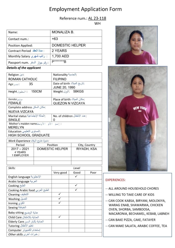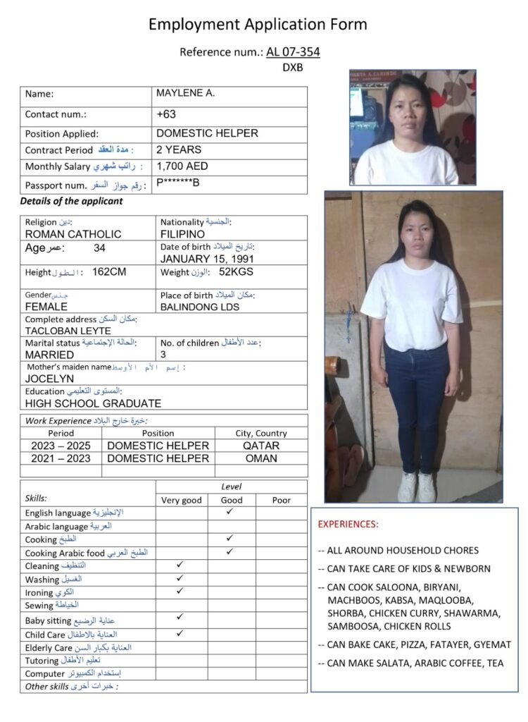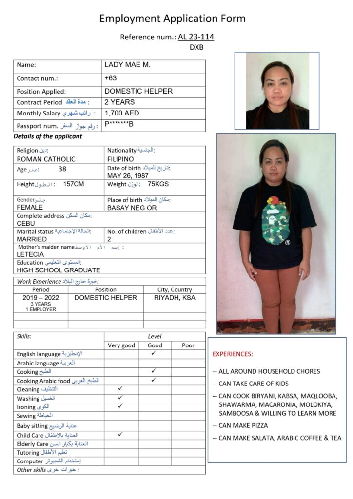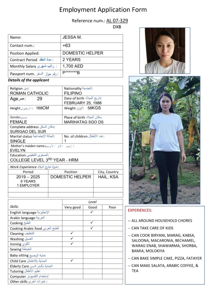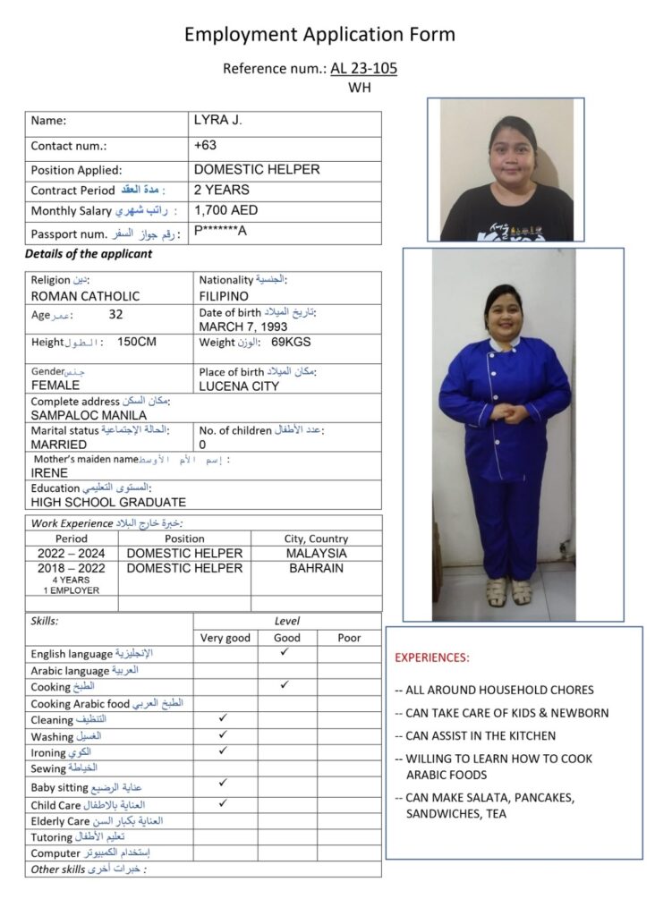 services while maintaining industry standards with a harmonious relationship with our foreign principals, employers and job seekers, ensuring maximum benefits on both ends. At Alyazwah Domestic Workers Services Center, we conduct thorough candidate assessment to match appropriate job applicants who will provide maximum potential service and meet the employer’s expectations.