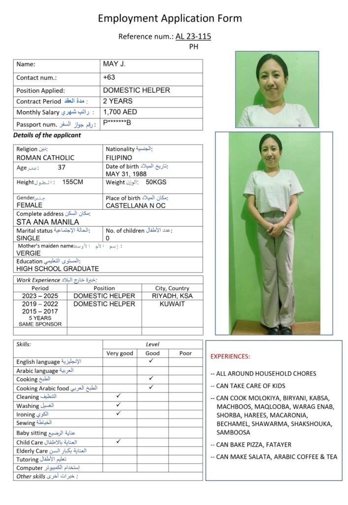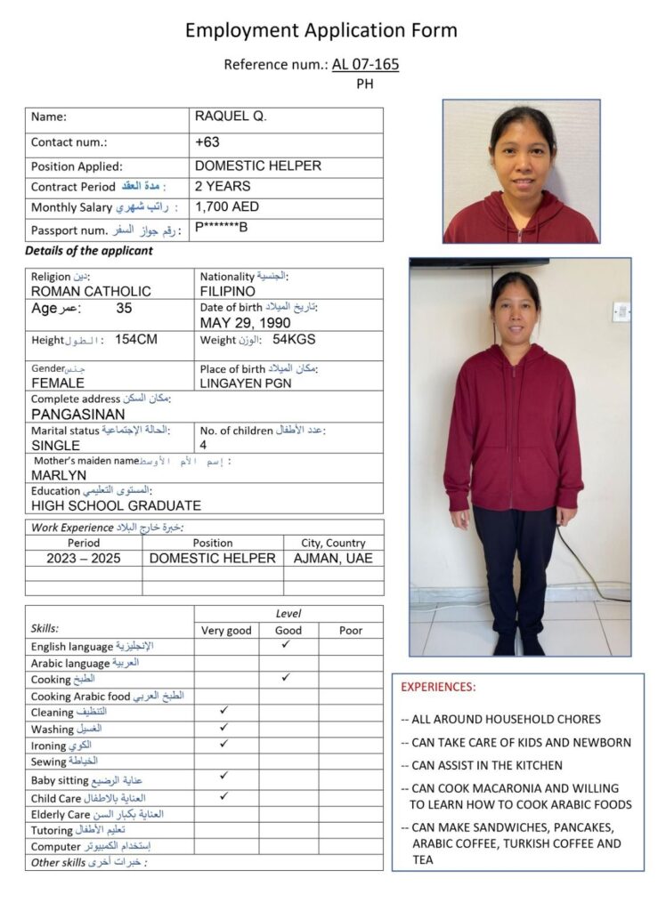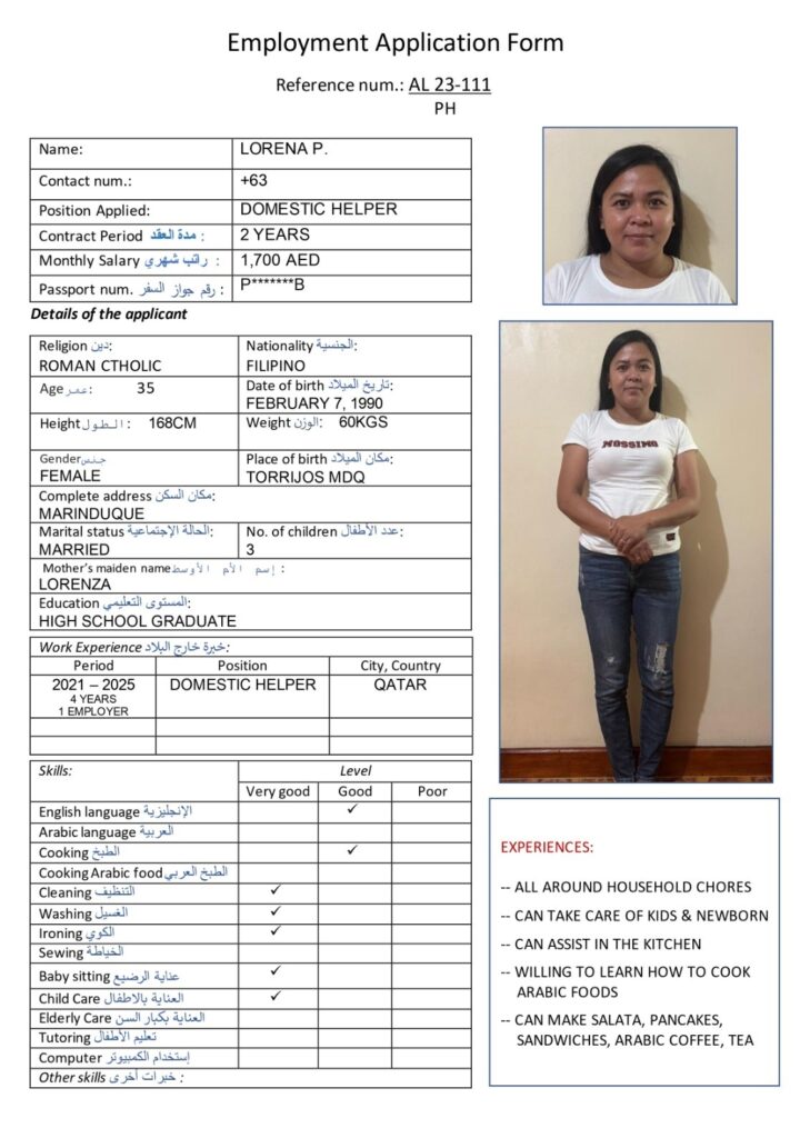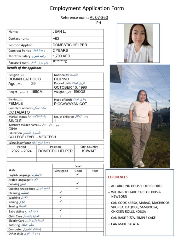 services while maintaining industry standards with a harmonious relationship with our foreign principals, employers and job seekers, ensuring maximum benefits on both ends. At Alyazwah Domestic Workers Services Center, we conduct thorough candidate assessment to match appropriate job applicants who will provide maximum potential service and meet the employer’s expectations.